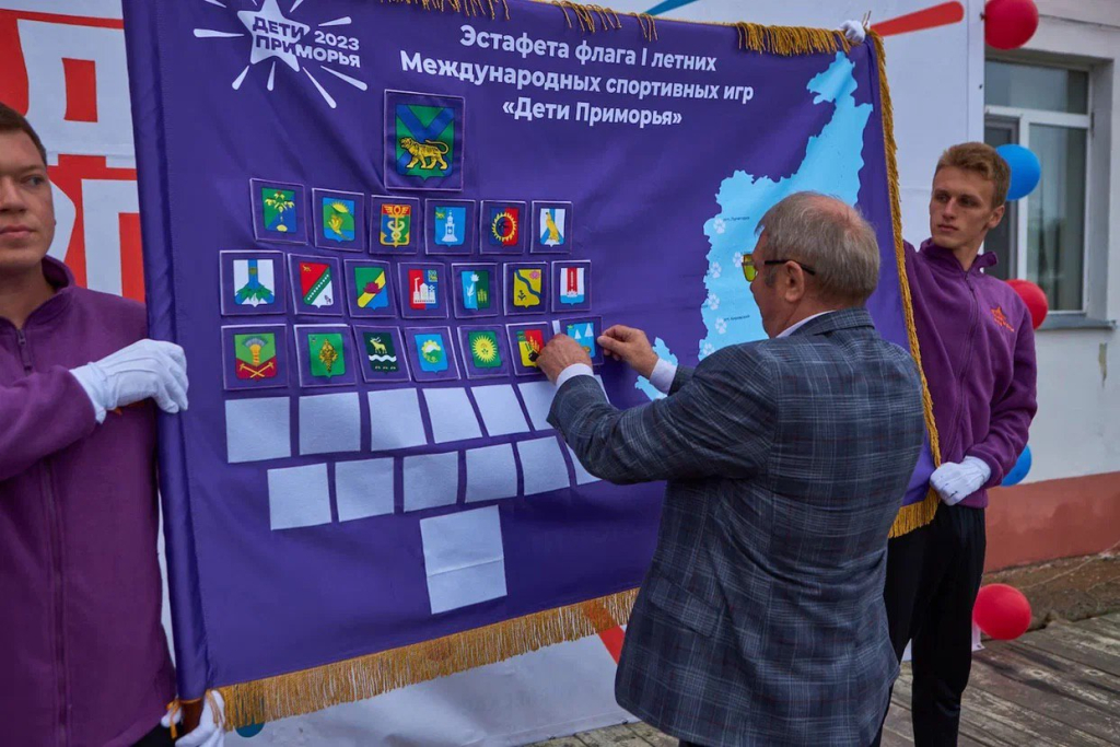 Знамя главного спортивного события этого лета побывало уже в большинстве муниципалитетов края. Последними к настоящему моменту к эстафете присоединились юные спортсмены Тернейского округа и Дальнегорска.