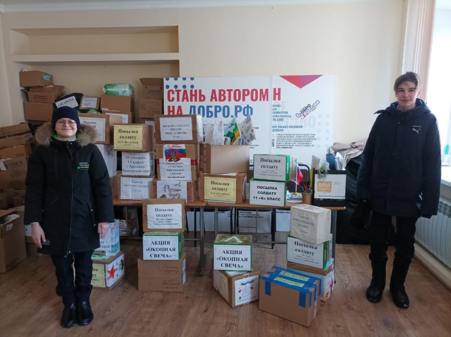 В них – вещи, угощения для бойцов и, конечно же, поздравительные открытки от детей с Днем защитника Отечества.