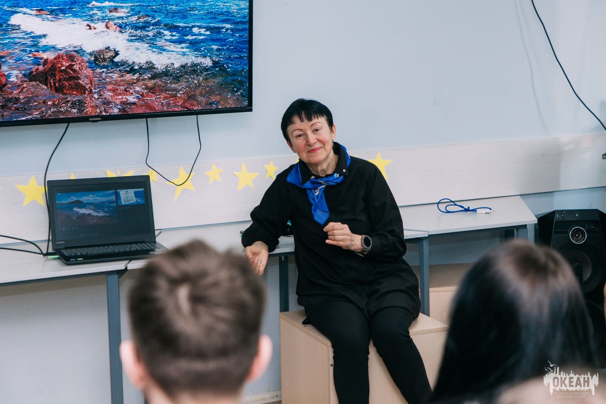 Сотрудники музейно-образовательного комплекса «Пятый океан» проводят для участников второй смены курс занятий, который знакомит ребят с историей России и детского центра «Океан». В этом году Центру исполняется 40 лет. За это время «Океан» стал ключевым федеральным образовательным учреждением и важным местом для тысяч детей по всей стране. На этой неделе школьники присоединились к музейным урокам под названием «Путешествие во времени». О том, как появился «Океан», подросткам рассказала Елена Пятакова, специалист МОК «Пятый океан».