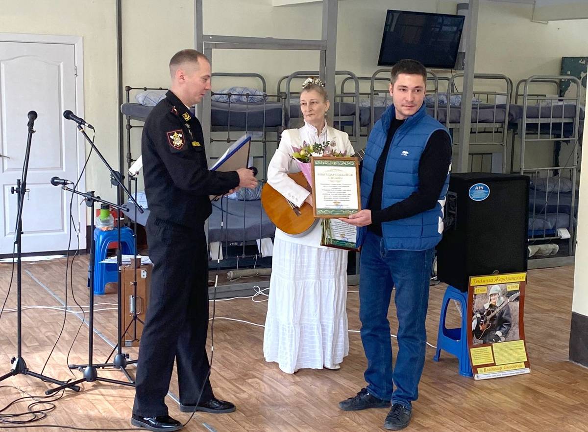 В преддверии Дня защитника Отечества в воинском подразделении Тихоокеанского флота прошло праздничное мероприятие. Для военнослужащих с концертной программой выступили организаторы фестиваля авторской песни «Приморские струны».