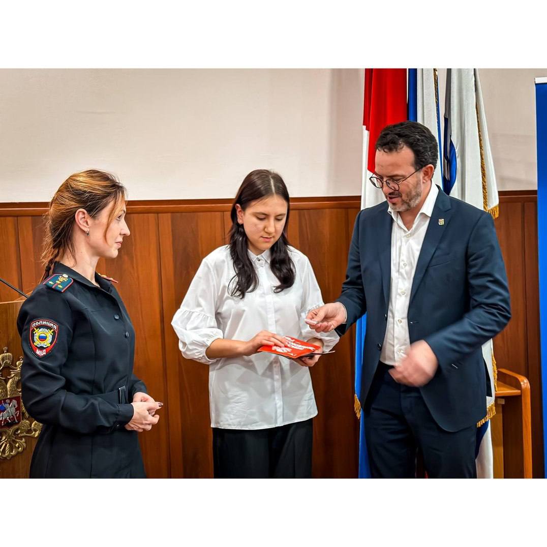 Юные находкинцы получили главный документ своей жизни из рук депутата думы НГО Анзора Авдадаева и врио начальника ОВМ Татьяны Ошиток.