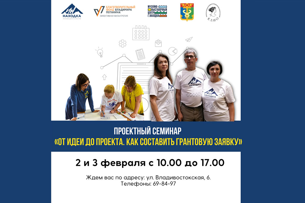 Есть идея, но не знаете, как ее реализовать? Мы вас научим! В течение двух дней, 2 и 3 февраля, с 10.00 до 17.00 на площадке Музейно-выставочного центра пройдёт проектный семинар «От идеи до проекта. Как составить грантовую заявку». Организаторами мероприятия выступит Центр социальных инноваций в сфере культуры «ИН-Центр» и Межмуниципальный ресурсный центр «Клио» (г. Находка).