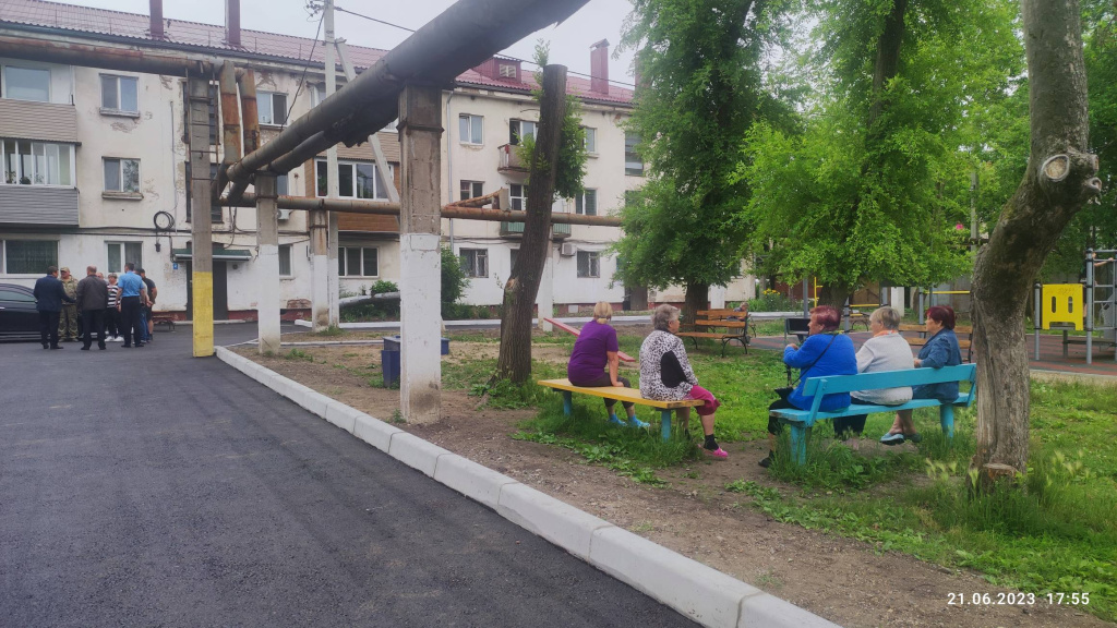 Около подъездов комиссию встретили старожилы – все они по 30 и более лет живут в этих домах. Люди благоустройством довольны - и взрослые, и дети. Ребята вовсю катаются на самокатах на новых дорожках, резвятся на спортивной площадке, которую установили здесь в прошлом году благодаря программе «Спортивный дворик», а буквально на днях дооснастили безопасным покрытием.