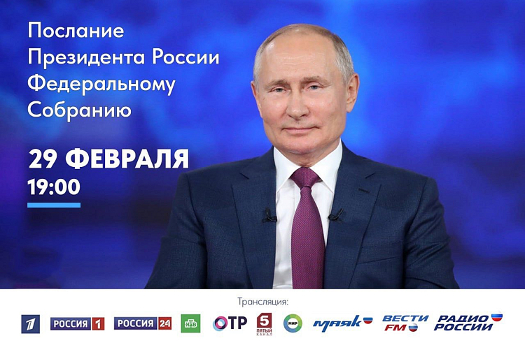Президент России Владимир Путин обратится к Федеральному Собранию с ежегодным Посланием в четверг, 29 февраля, в 19.00 по владивостокскому времени.