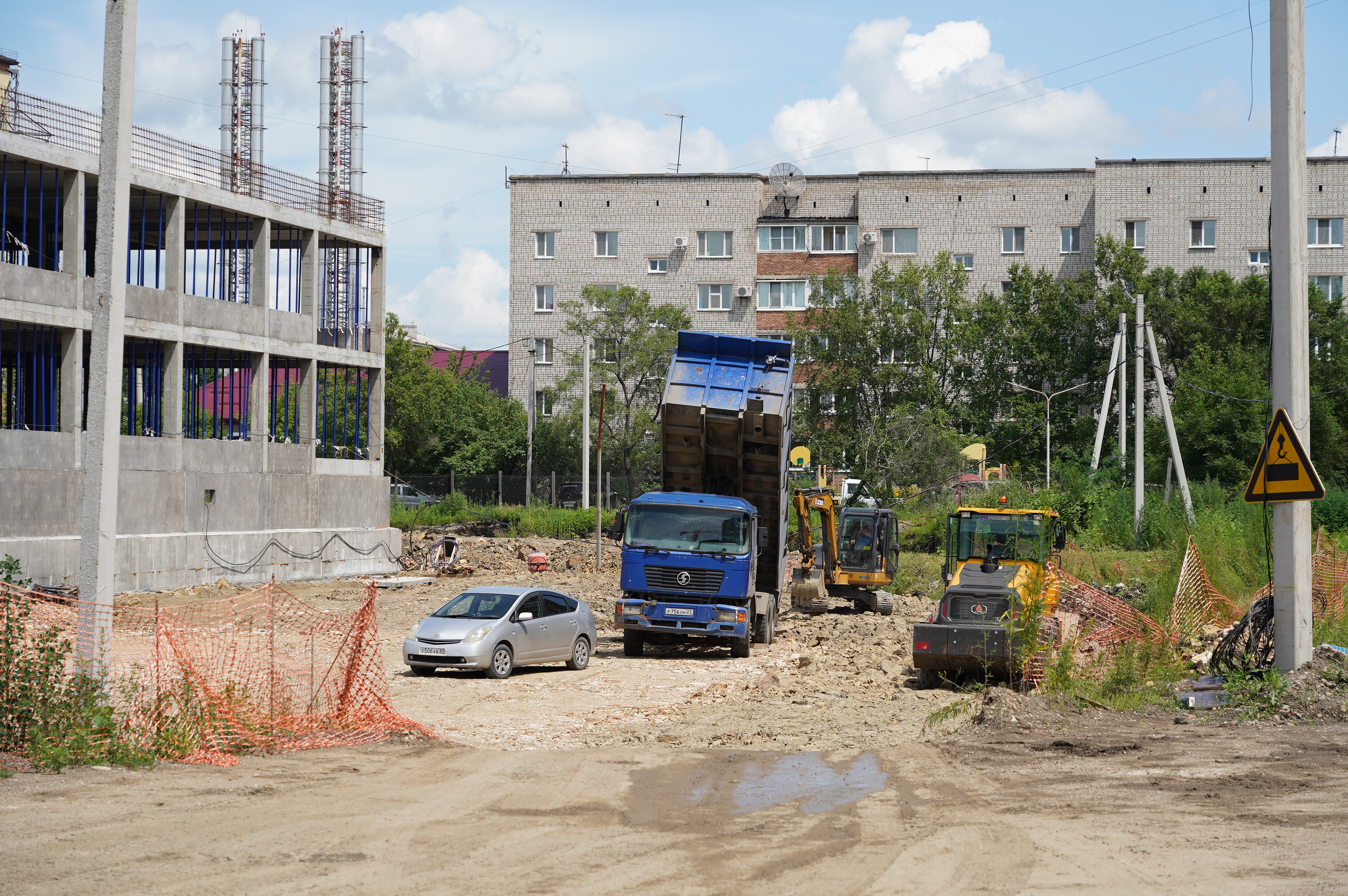На текущий момент ведутся строительные работы по возведению каркасов блоков. В настоящее время в строительстве задействовано более 15 единиц техники и порядка 60 единиц людей.
