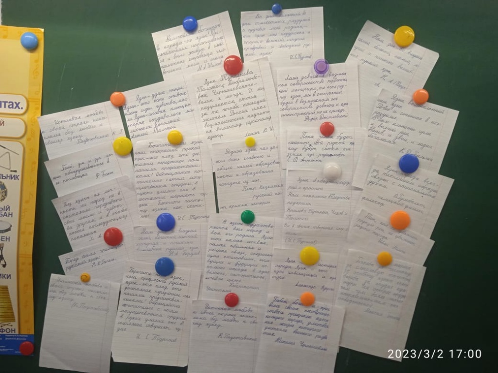 После теоретической части ребята приступили к практической: необходимо аккуратно без ошибок списать цитаты великих людей о родном языке. Видно было, как дети старались, аккуратно выводили буквы. Каждый хотел стать лучшим и выполнить задание.