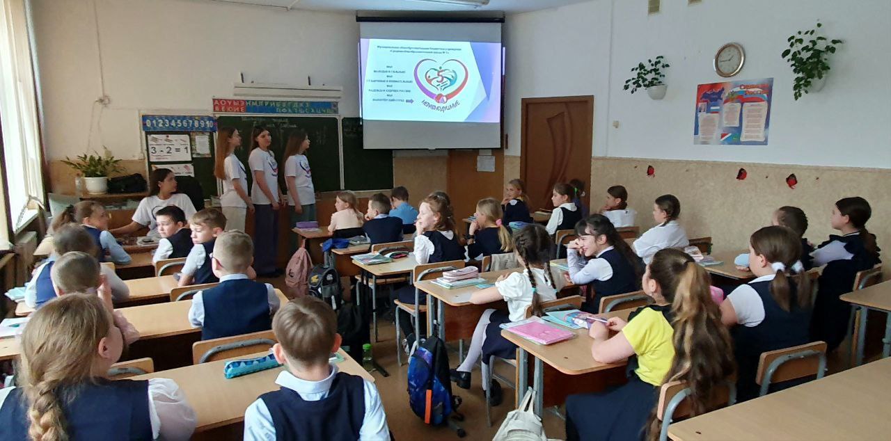А еще старшеклассники рассказывают малышам о том, кто такие волонтеры и почему важно делать добро.