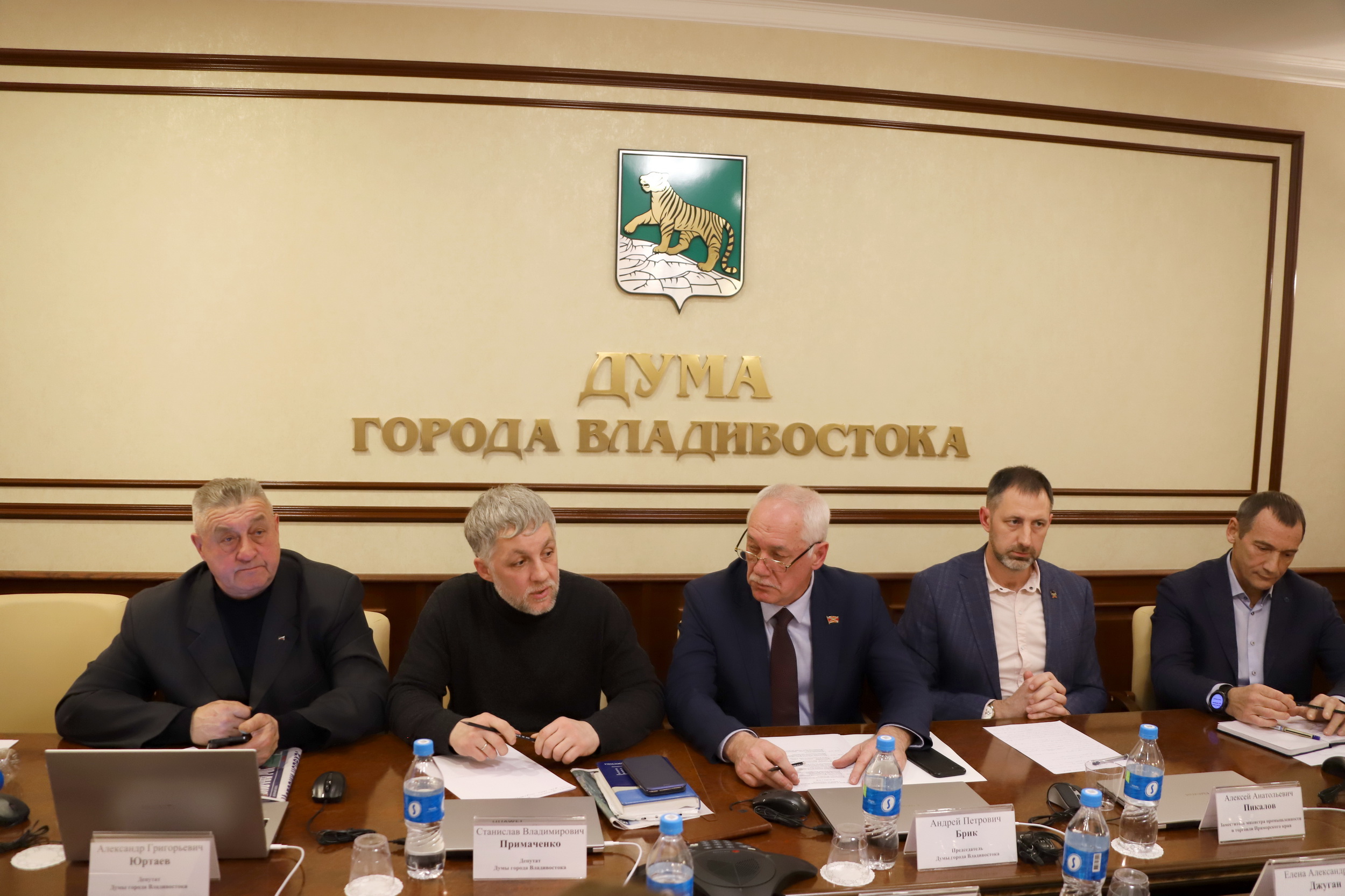 В совещании, которое провел председатель Думы города Владивостока Андрей Брик, приняли участие заместитель министра промышленности и торговли Приморского края Алексей Пикалов,
