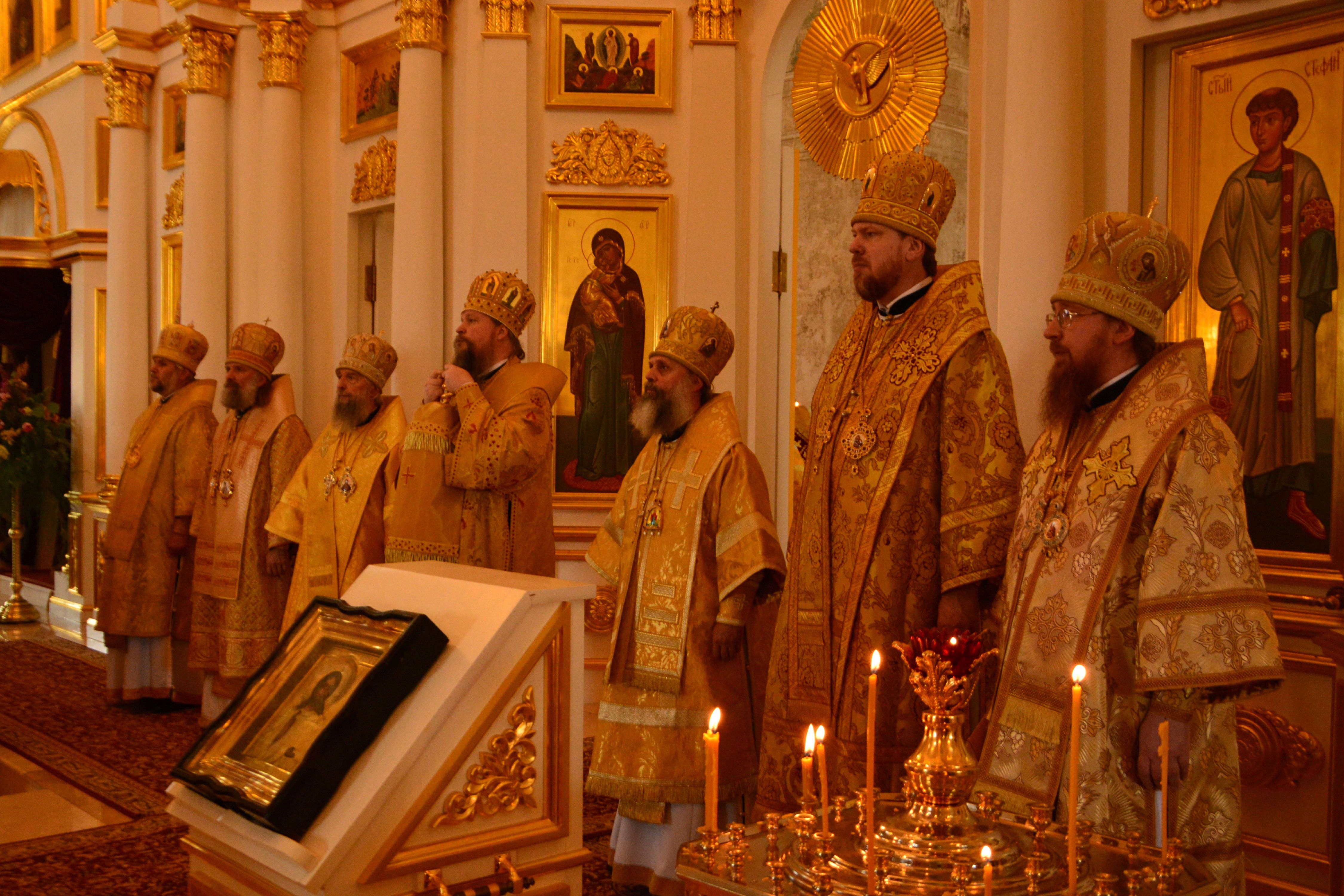Богослужение возглавил митрополит Воскресенский Дионисий, первый викарий Святейшего Патриарха Московского и всея Руси, управляющий делами Московской Патриархии, в сослужении митрополита Иваново-Вознесенского и Вичугского Иосифа, митрополита Саранского и Мордовского Зиновия, митрополита Владивостокского и Приморского Владимира, епископа Скопинского и Шацкого Питирима, епископа Веневского Феодорита и епископа Касимовского и Сасовского Василия.