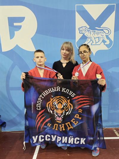 Уссурийские самбисты привезли медали с первенства Приморья. Иван Цонда, Елена Грибанова, Лола Юсуфова.