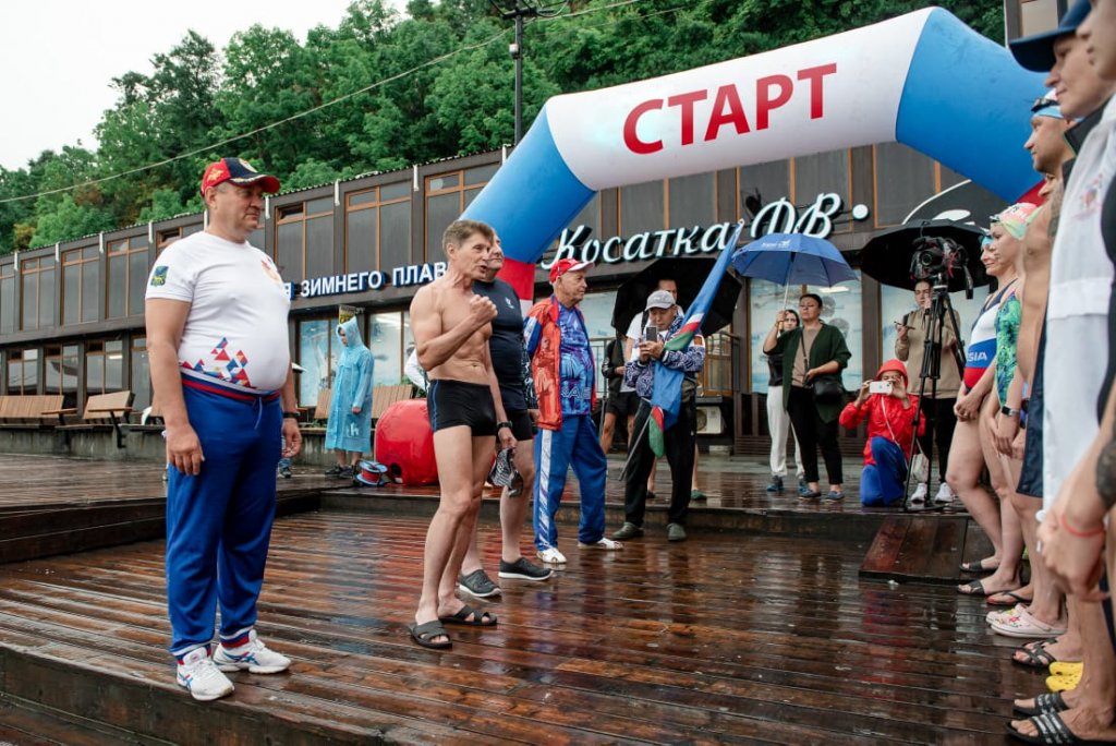 Старт заплыву в центре зимнего плавания «Косатка ДВ» дал Губернатор Приморского края Олег Кожемяко. Вместе с ним стартовала группа участников, возглавляемая министром спорта Приморья Жаном Кузнецовым.
