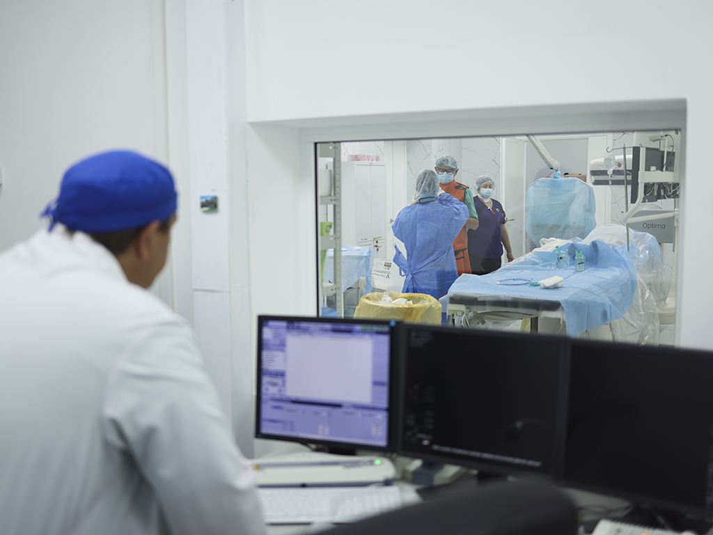 Провести диагностику и устранить причину сосудистой катастрофы позволяет высокотехнологичное рентгеновское оборудования. Состояние артерий пациента и свои манипуляции внутри его сердца хирург видит на мониторе ангиографического комплекса. Операции при этом щадящие – под местным наркозом и без больших хирургических разрезов.