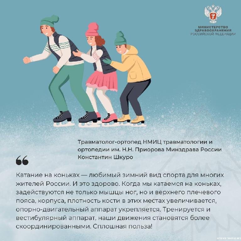 Травматолог-ортопед НМИЦ травматологии и ортопедии им. Н.Н. Приорова Минздрава России Константин Шкуро о том, как выбрать коньки и не получить травму на льду Катание на коньках — сплошная польза!