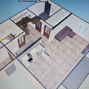 1 этаж: гостиная+кухня(50 кв.м.), холл (24 кв.м.),сан.узел(12кв.м.),гардеробная(6кв.м.), котельная(15кв.м.).