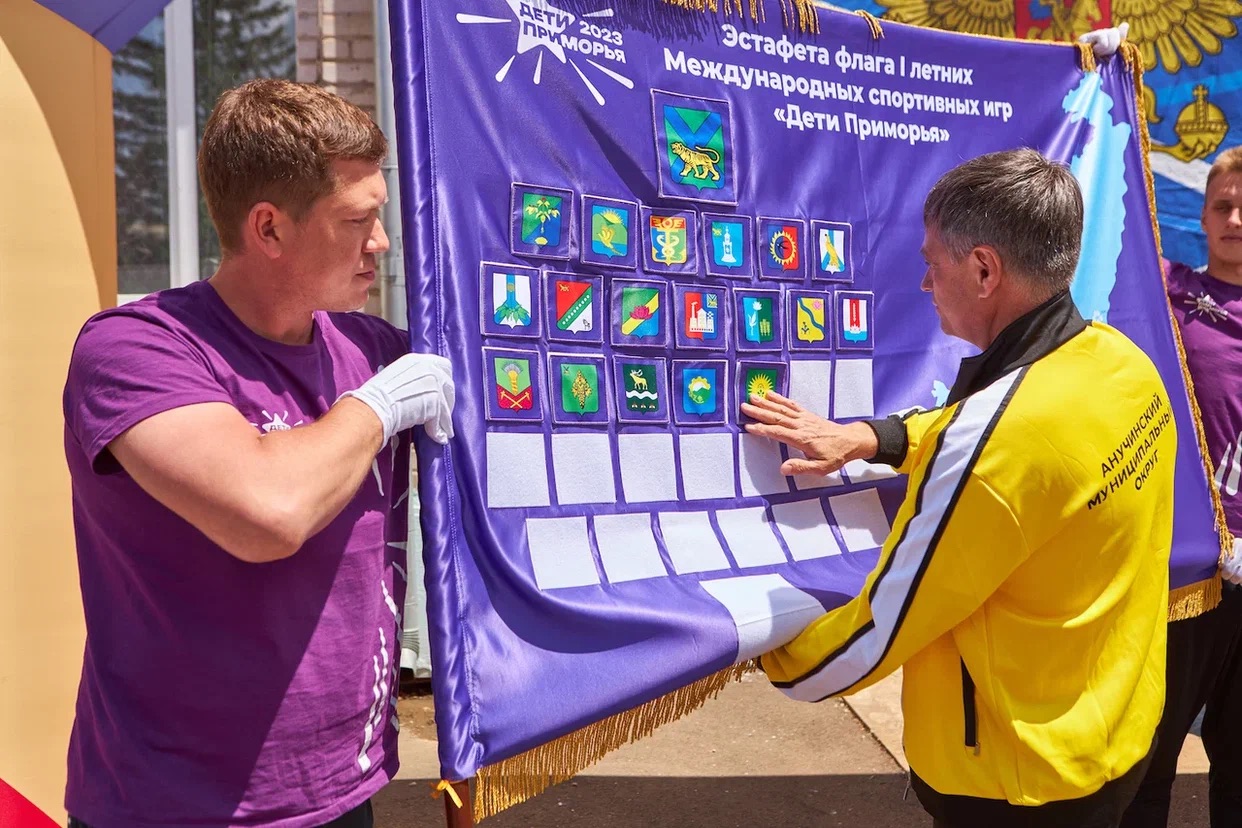 Точно такие же гербы руководители городов, районов и округов Приморья размещают на флаге эстафеты игр. В Арсеньеве государственный символ прикрепил глава округа Владимир Пивень, в Анучинском округе – и. о. главы Андрей Янчук, в Михайловке – глава района Владимир Архипов, отмечает пресс-служба краевого правительства.