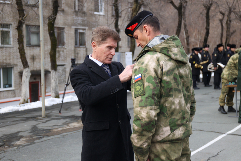 Губернатор Приморья вручил медали «За храбрость» и «Участнику СВО. Отряд “Тигр”» бойцам приморского добровольческого отряда. Награждение прошло в расположении дивизиона морской пехоты ТОФ в среду, 22 ноября.
